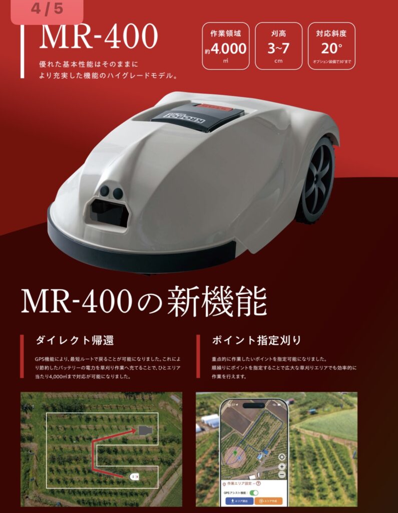 GPS搭載上位モデル【MR-400】最大作業領域 約4,000㎡